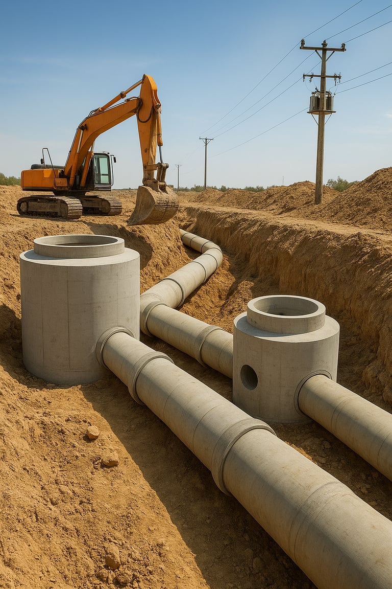 We excel in executing all project stages—from design to handover—including construction and concrete works, excavation, backfilling and foundations, installation of sewage and electrical networks, interior and exterior finishing, glass and cladding façades, waterproofing and thermal insulation, manufacturing and installation of prefabricated rooms and caravans, as well as IT networking works.